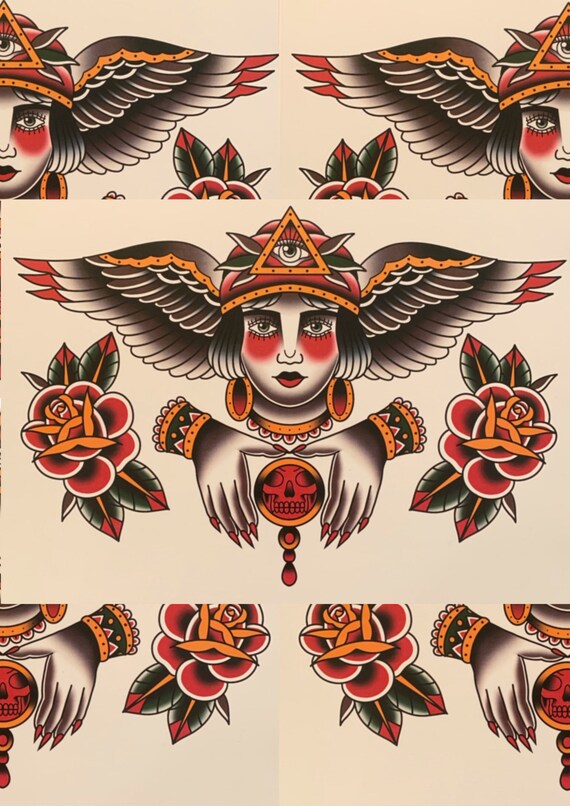 Traditional Winged Psychic Tattoo Print Etsy