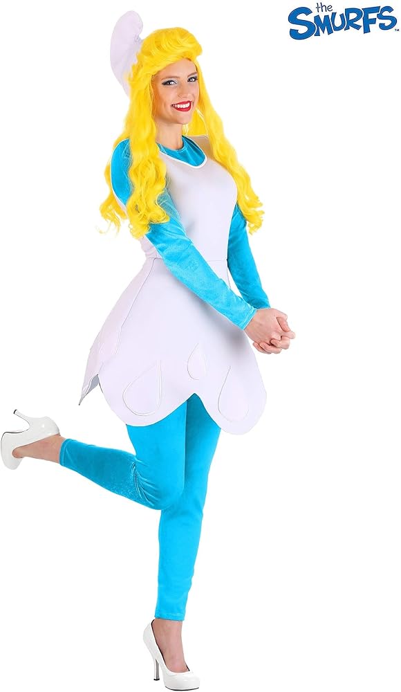 Amazon Com Smurfette Costume Adult The Smurfs Costume For Women Officially Licensed Small Blue Clothing