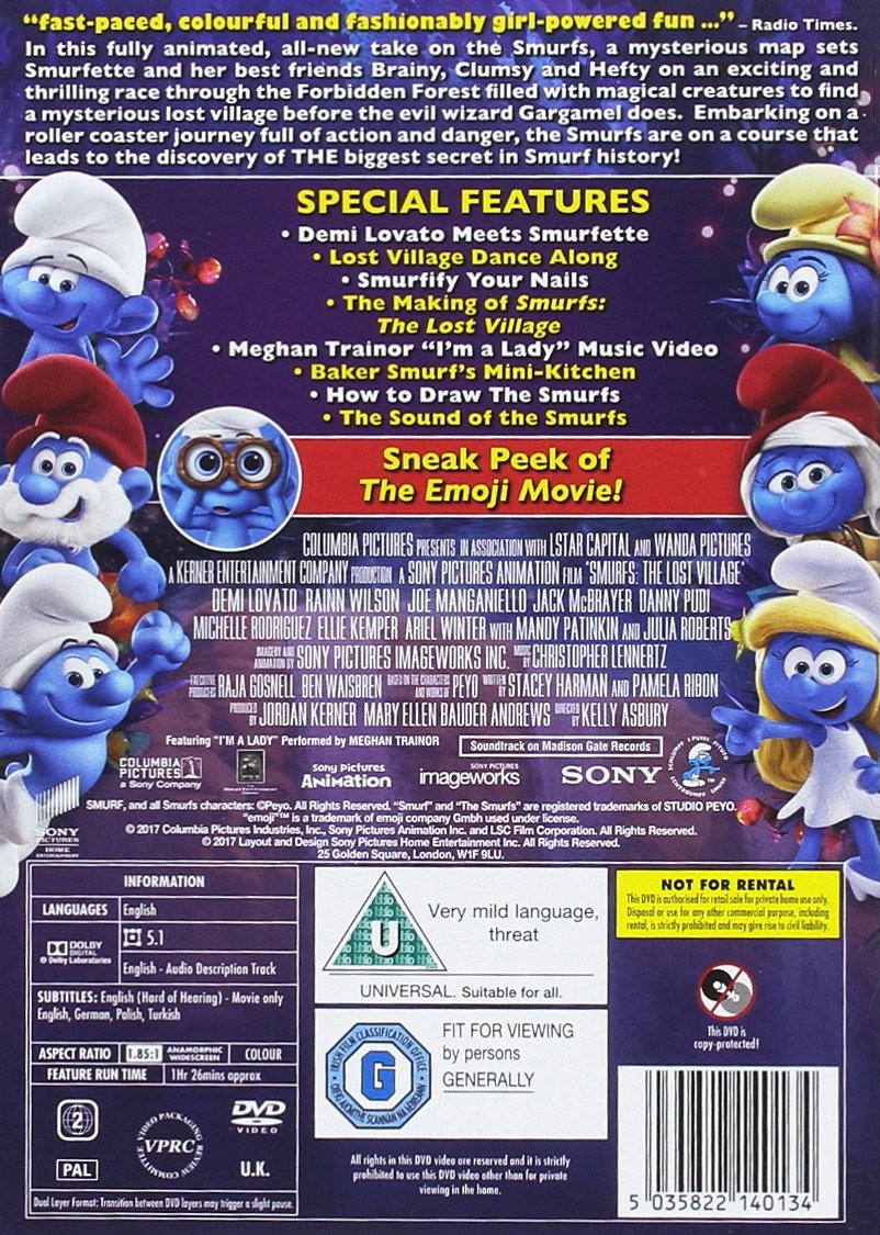Smurfs The Lost Village Dvd 2017 Vhs And Dvd Credits Wiki Fandom