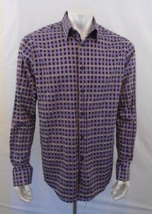 Alfred Sung Button Up Men S Long Sleeve Purple Striped Squares Shirt Size Lt Ebay